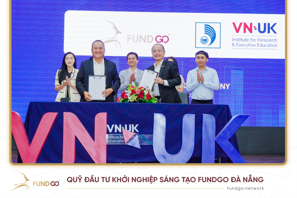 Tham dự buổi lễ, Ông Vũ Tiến Dũng – Giám đốc Đầu tư Quỹ FUNDGO Đà Nẵng là đại diện thực hiện nghi thức ký kết cùng Ông Nguyễn Hiệp – Viện trưởng, Viện Nghiên cứu và Đào tạo Việt – Anh (VNUK), Đại học Đà Nẵng. Sự kiện diễn ra trong không khí trang trọng với sự hiện diện của đại diện lãnh đạo và các đơn vị chuyên môn của hai bên.